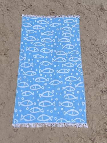 Fouta - فوطة شاطئ بيسكا من فوتا - مصنوعة من القطن بنسبة 100% - فائقة النعومة والامتصاص وسريعة الجفاف للسفر وحمام السباحة والشاطئ