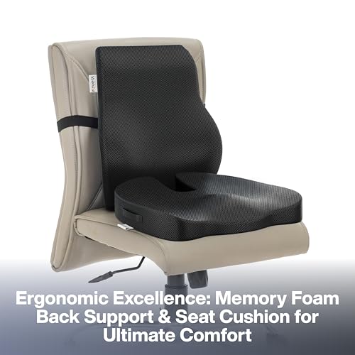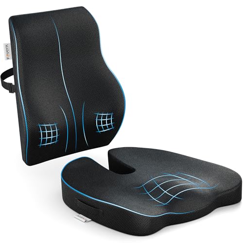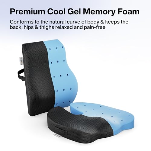 FOVERA - فو فيرا وسادة دعم الظهر للكرسي والعصعص لعظم الذنب - مجموعة وسادة جلوس من الميموري فوم من جل بارد لتقويم العظام - تخفف الام الظهر وعرق النسا والورك - لكرسي المكتب والمنزل (اسود شبكي)