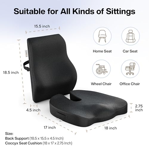 - مجموعة وسائد الجلوس المثالية لتخفيف الألم: تصميم مريح لوسادة مقعد العصعص مع فتحة على شكل حرف U لتعليق العصعص (عظم الذيل) ويمنع ضغطه. يوفر التصميم المريح لدعم الظهر دعمًا استثنائيًا للظهر وأسفل الظهر. بفضل تصميمها المحيطي، تعمل هذه الوسادة على تحسين وضعية الجلوس مع تقليل الألم الناتج عن ساعات طويلة من الجلوس.
