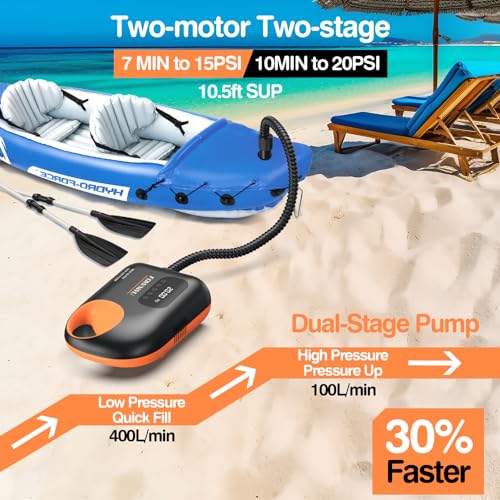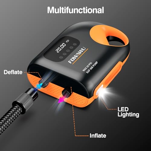 FOWAWU - فاواو مضخة سوب، مضخة لوح مجداف 20 باوند لكل انش مربع، مضخة نفخ وتفريغ ذكية مزدوجة المرحلة، ايقاف تلقائي، مضخة سوب قابلة للنفخ، مضخة هواء اس يو بي بتيار مستمر 12 فولت، موصل سيارة