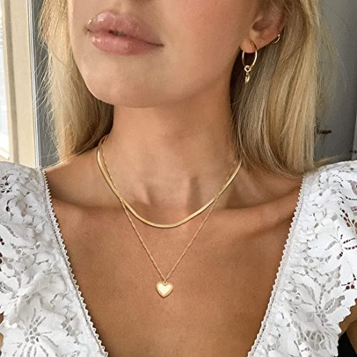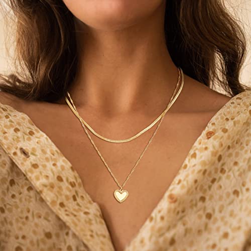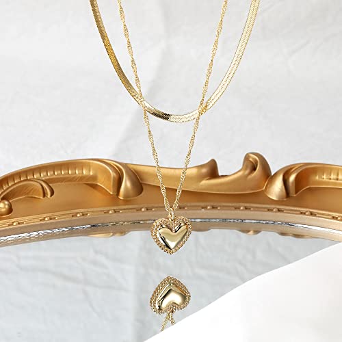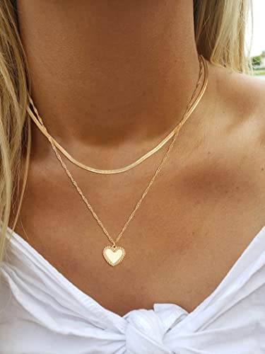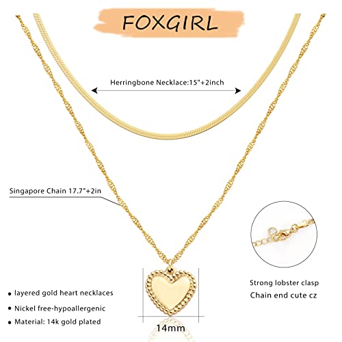 Foxgirl - فوكس جيرل عقد بقلادة ذهبية على شكل قلب مطلي بالذهب عيار 14 قيراط، قلادة بسيطة ولطيفة للنساء، قلادات انيقة بطبقات للنساء، مجوهرات ذهبية للبنات المراهقات، مطلية بالذهب، بدون احجار كريمة