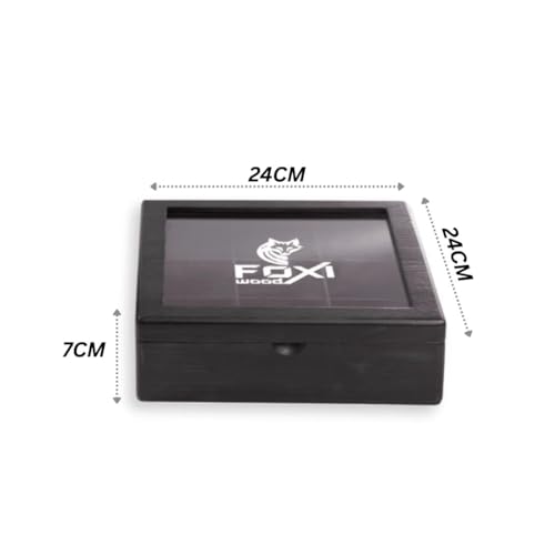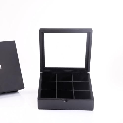 FoxiWood - صندوق شاي خشبي فاخر مكون من 9 فتحات من فوكسي وود، لمسة نهائية سوداء انيقة