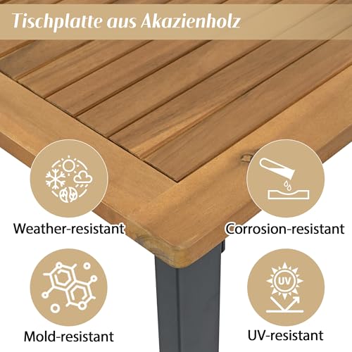 - 【هيكل قوي بمواد عالية الجودة】 المواد الرئيسية لمجموعة الأثاث هذه هي خشب الأكاسيا والفولاذ المجلفن. بالإضافة إلى ذلك، فإن هذه المواد صديقة للبيئة للغاية. خشب الأكاسيا مقاوم للتآكل للغاية، وله خاصية عدم المرور بالبرد في الشتاء والحار في الصيف، وهو غير ضار بجسم الإنسان، وليس من السهل تشويهه، ويمكن استخدامه لفترة طويلة.