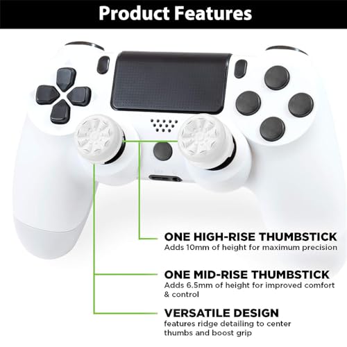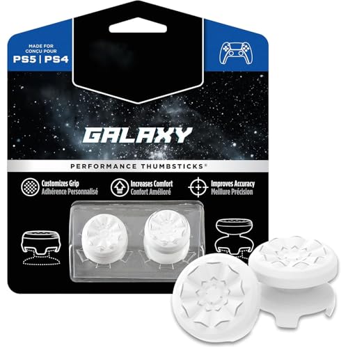YARDHOBI - غطاء عصا تحكم من جالاكسي لجهاز PlayStation 4 و5، واقي لتعزيز أداء العصا متوافق مع مقابض أجهزة التحكم من جالاكسي (1 عالية الارتفاع، 1 متوسطة الارتفاع، أبيض)
