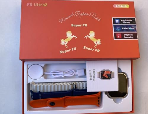 Generic - ساعة FR Ultra2 الذكية 3+1 كومبو مع هدية عشوائية – شاشة 2.02 بوصة، شحن لاسلكي، مقاومة للماء، دعم المكالمات عبر البلوتوث، مع 4 أحزمة متنوعة (علبة حمراء)