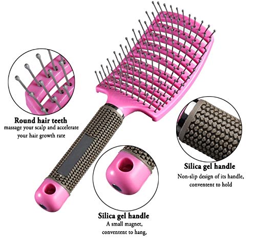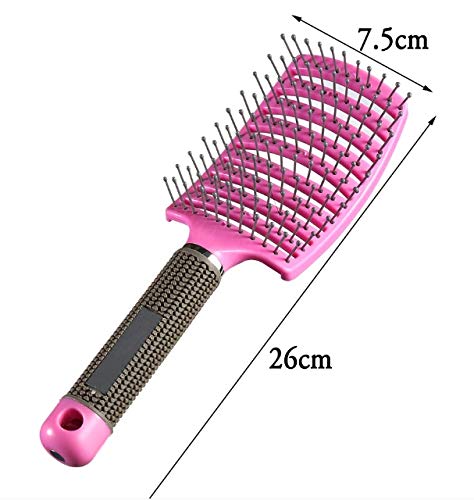 Frackson - مشط لتدليك فروة الرأس للنساء، فرشاة شعر بشعيرات من النايلون لفك تشابك الشعر الرطب والمجعد، أدوات تصفيف الشعر لصالونات التجميل من فراكسون (لون وردي)