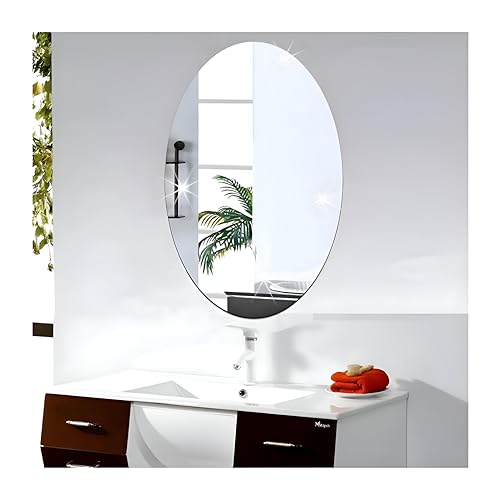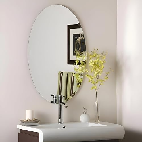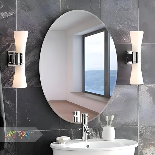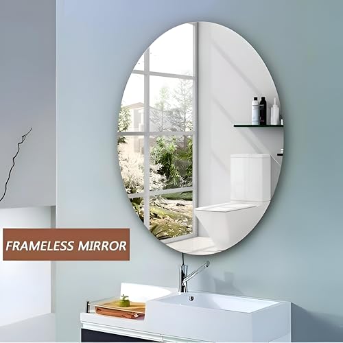 Generic - مراة حائط بيضاوية بدون اطار - مراة انيقة للحمام بحافة مشطوفة مقاس 15 × 18 انش بتصميم عصري بسيط، مثالية لتعزيز المساحات الصغيرة مع انعكاس انيق.