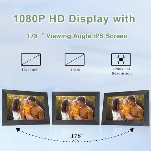 - 【جودة صورة استثنائية】: تضمن دقة الوضوح 1280×800 بيكسل لإطار الصورة الرقمي المزود بشبكة واي فاي من فريميو مقاس 10.1 بوصة صورة مذهلة وواضحة وتوفر لك تجربة بصرية غير عادية من جميع الزوايا. تتيح لك تقنية IPS مشاهدة الحظاتك المفضلة بزوايا رؤية واسعة وتناسق ألوان دقيق.