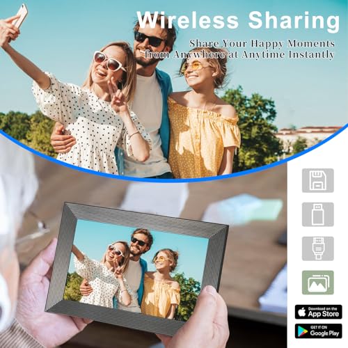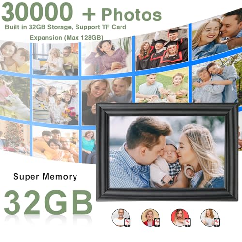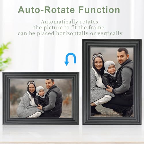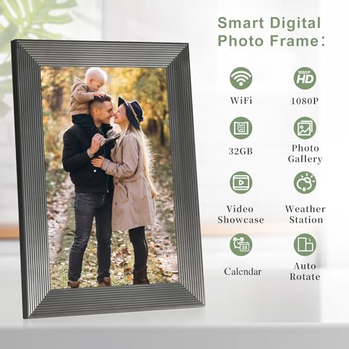 QCREA - برواز صورة رقمي ذكي واي فاي مقاس 10.1 بوصة، إطار صورة رقمي بسعة تخزين 32 جيجابايت وفتحة بطاقة SD، إطارة صور إلكتروني بشاشة لمس IPS مع خاصية الدوران التلقائي، إطار صورة رقمي بشبكة واي فاي من فريميو