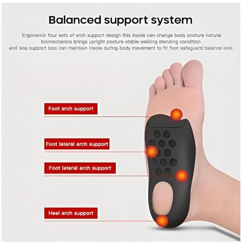 - تم تصميم هذه النعال الداخلية لتقويم العظام خصيصًا بقوس صلب بارتفاع 3.5 سم يوفر دعمًا قويًا ومستقرًا للأقدام المسطحة والساقين على شكل حرف O والتهاب اللفافة الأخمصية. من خلال إعادة توزيع الضغط والحفاظ على التوازن، فإن هذه النعال تساعد على تقليل إجهاد القدم، مما يجعل المشي والحركة اليومية أكثر راحة وبدون مجهود على مدى فترات طويلة.