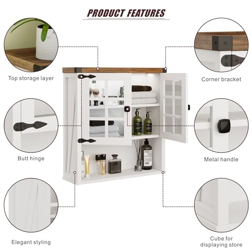 - 【منظم مساحة ممتاز】: هل سئمت من الأسطح الفوضوية؟ توفر خزانة الحائط الخاصة بنا مساحة تخزين إضافية لترتيب حمامك مع الحفاظ على أرضية واسعة. يسهل التصميم العلوي المغلق والجزء السفلي المفتوح التنظيم، ويمتزج بسلاسة مع جماليات الغرفة الريفية.
