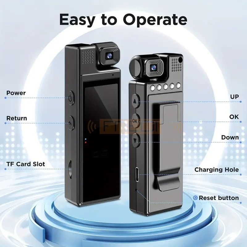 - كاميرا قوية: تعمل كاميرا الجسم مع تسجيل الفيديو على تشغيل جميع اللقطات على شاشة LED عالية الجودة. تأكد من دقة زوايا التسجيل في الوقت الحقيقي، وسهولة التشغيل والحذف الفوري للقطات دون الحاجة إلى لاب توب/موبايل/كمبيوتر. تتيح لك القائمة التفصيلية للتبديل التحكم في الكاميرا بسهولة.