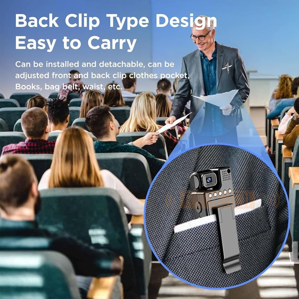 - كاميرا الجسم عالية الدقة 1080P: مع دقة HD 1080P، تلتقط كاميرا الفيديو الصغيرة المحمولة هذه كل التفاصيل وتضمن جودة بصرية عالية الدقة، مما يغمرك في لقطات فيديو حية وواضحة. مثالية لمجموعة متنوعة من الأنشطة: السفر والرياضة مثل المشي لمسافات طويلة والتزلج والتخييم وركوب الدراجات والملاحظات المهمة مثل المؤتمرات والاجتماعات والفصول الدراسية والأمن الداخلي والخارجي والسلامة الشخصية وإنفاذ القانون.