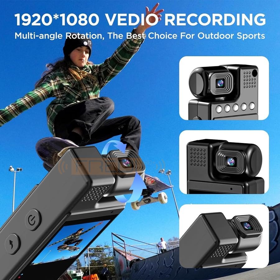 FREDI HD PLUS - كاميرا جسم HD بلس من فريدي مع تسجيل فيديو وصوتي، عالية الدقة 1080P عدسة قابلة للدوران 180 درجة، رؤية ليلية، عمر بطارية 6 ساعات للتسجيلات اليومية ومهام التسليم الخدمة، أسود