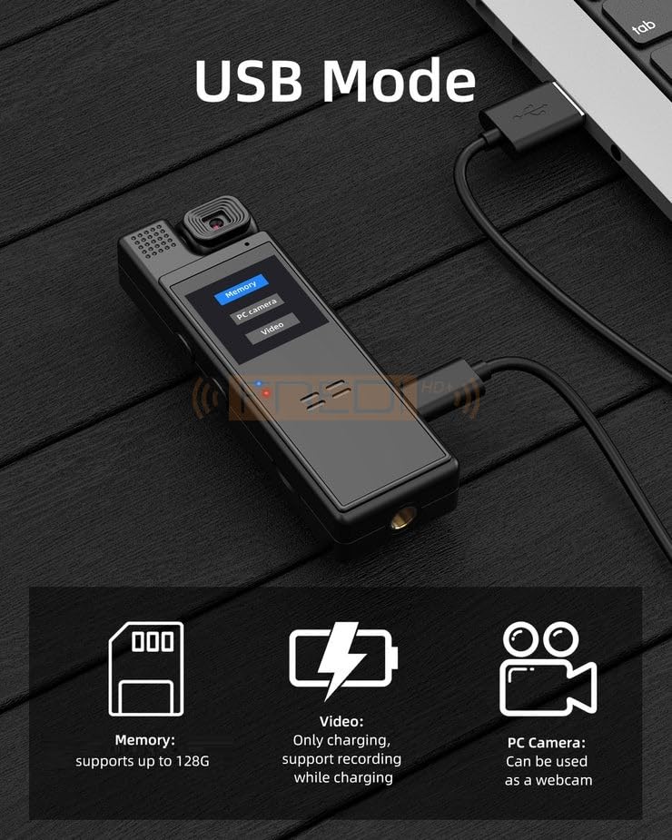- مجهزة ببطارية قابلة لإعادة الشحن 1200 مللي أمبير/ساعة: يمكن للكاميرا أن تعمل بشكل مستمر لمدة 6-8 ساعات، كما أنها تدعم الشحن أثناء تصوير الفيديو عند توصيل الجهاز بباور بانك/مصدر طاقة، مما يساعدك على البقاء مركزًا في جميع الأوقات. تدعم بطاقة ذاكرة 128 جيجابايت (غير متضمنة في العبوة)، تدعم توفير الفيديو لفترة طويلة، يمكن التعرف على كاميرا الجسم واللاب توب والكمبيوتر للتشغيل.
