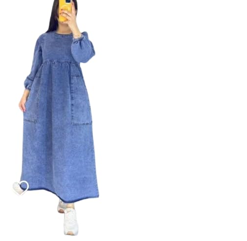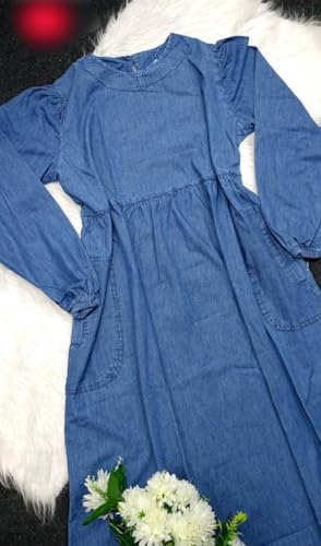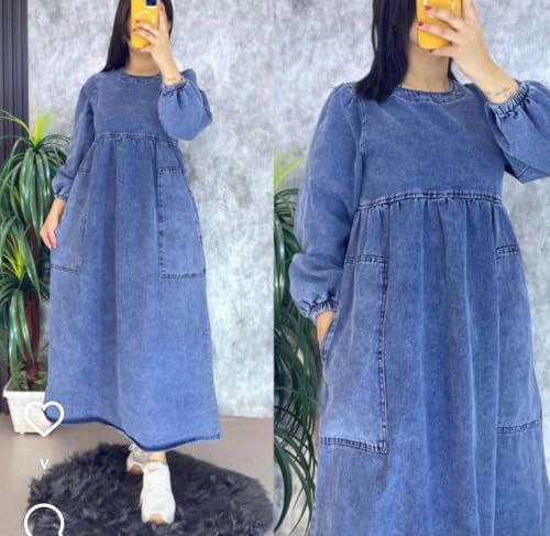 Generic - فستان من فري ساياايز مصنوع من الدينيم للنساء باللون الأزرق