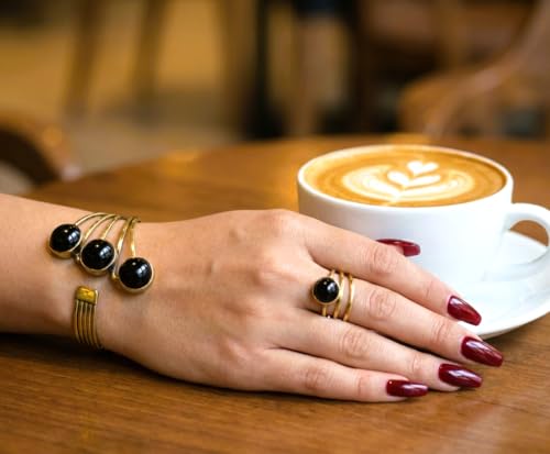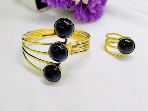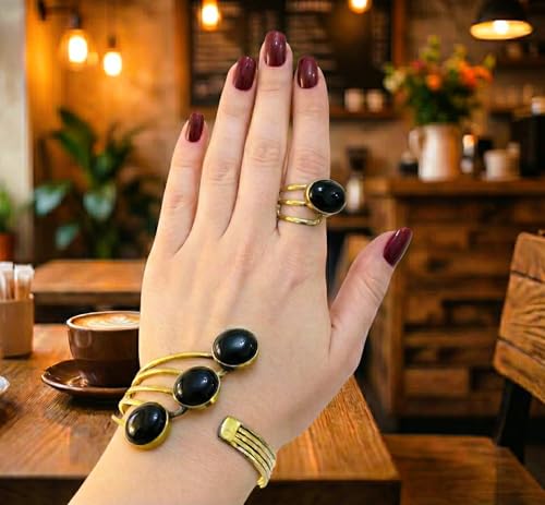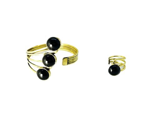 Generic - طقم نحاس أنسيال وخاتم فري سايز ومطعم بأحجار العقيق(الاسود)
