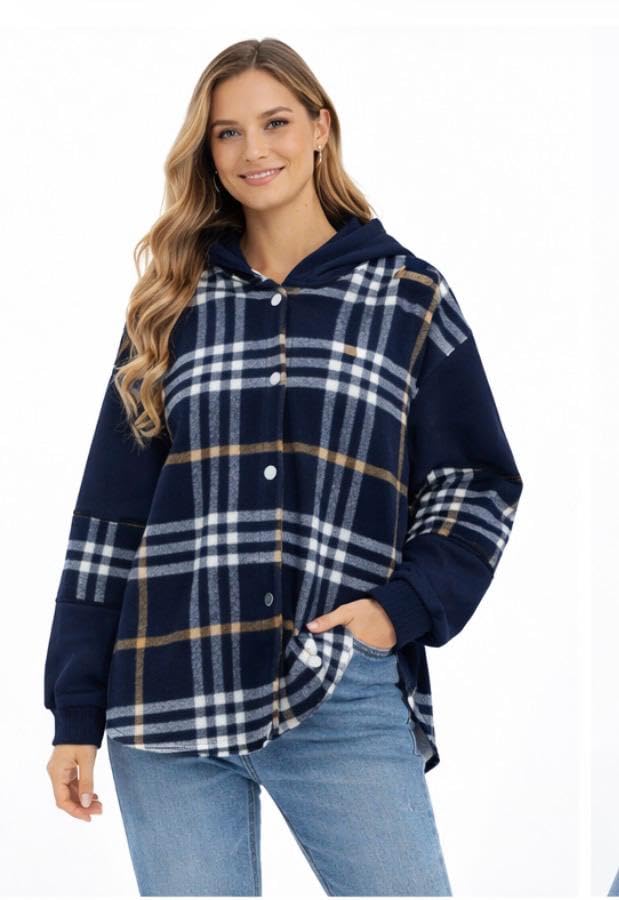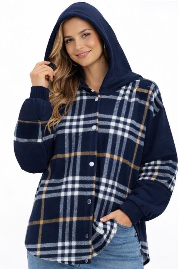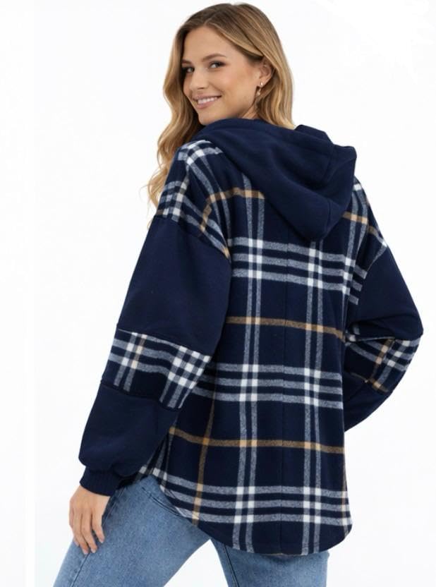 Generic - قميص نسائي بقلنسوة بنمط كاروهات فري سايز