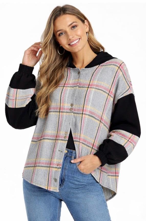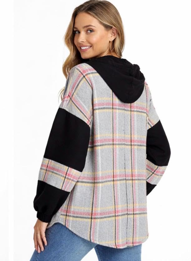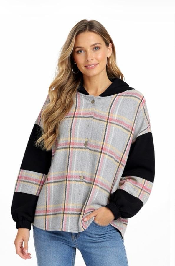 Generic - قميص نسائي بقلنسوة بنمط كاروهات ملونة فري سايز