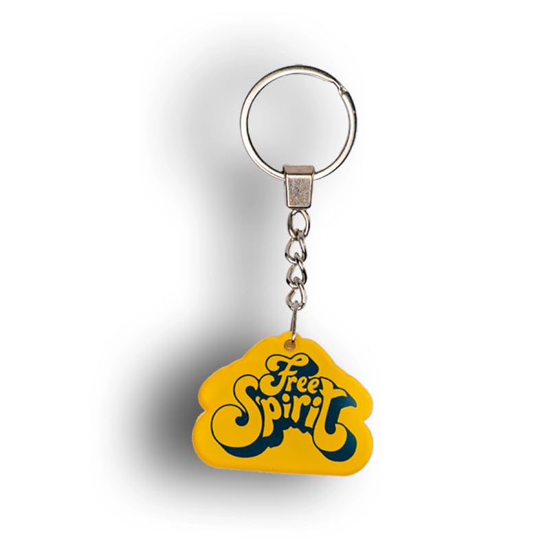 Generic - سلسلة مفاتيح صفراء مع سلسلة معدنية من فري سبيريت، تصميم شعار مزخرف، أكسسوار للجنسين