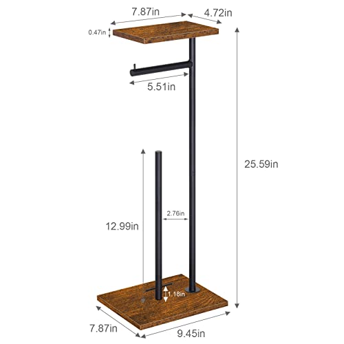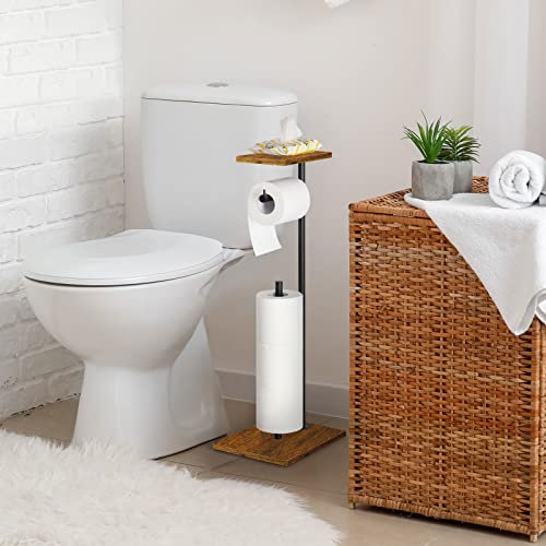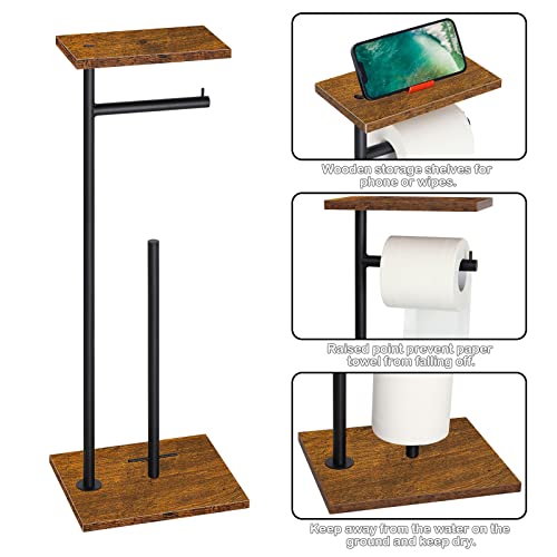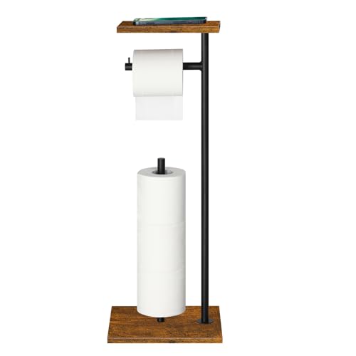 YBING - حامل مناديل تواليت قائم بذاته مزود برف خشبي، حامل لفة مناديل تواليت بتصميم ريفي قائم للحمام وغرفة الغسيل، بني بنمط ريفي