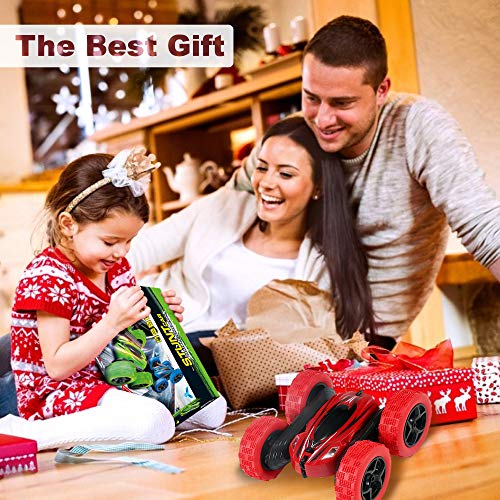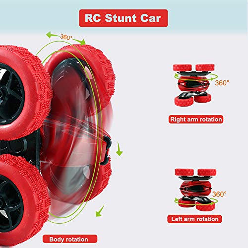 FREE TO FLY - لعبة سيارة بجهاز تحكم عن بعد للأطفال من فري تو فلاي: بهلوانية رباعية الدفع تعمل مع بطاريتين قابلتين لإعادة الشحن - هواية مزدوجة الانزلاق، هدايا عيد ميلاد الصغار، أحمر