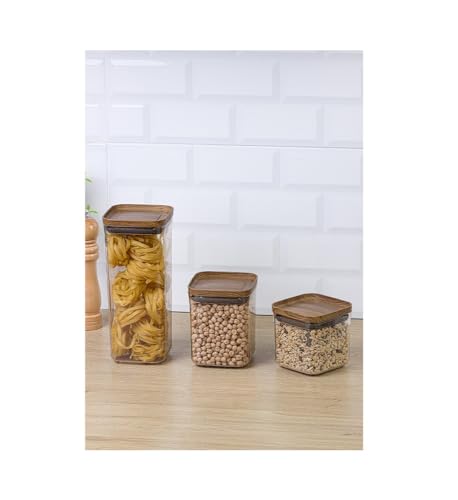 Freecook - طقم علب حفظ طعام أكريليك مربعة مع غطاء من فريكوك، 3 قطع، تصميم شفاف