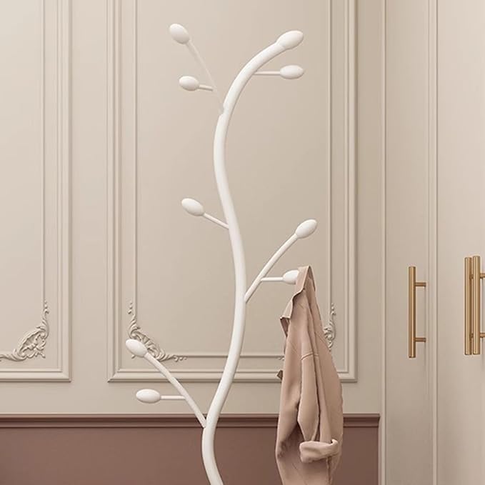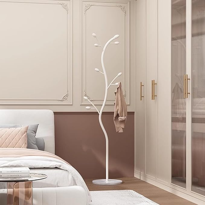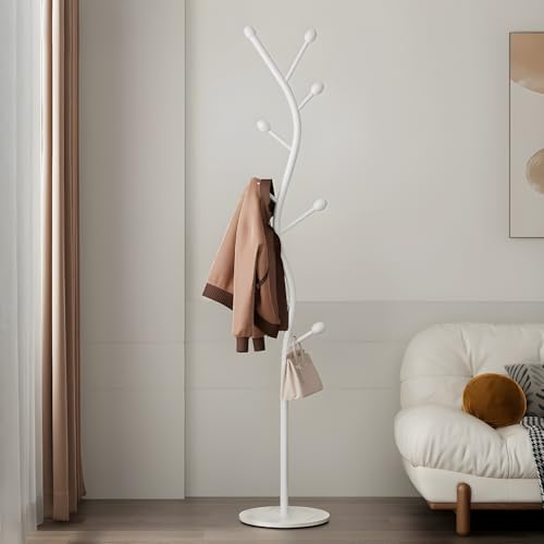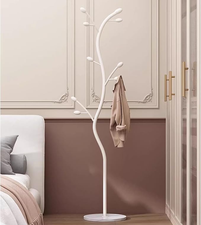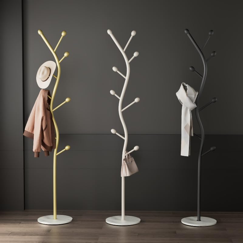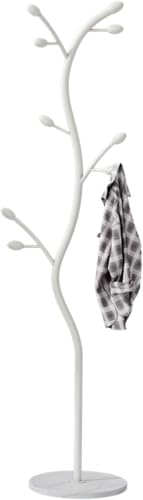 Generic - حامل ملابس قائم بذاته على شكل شجرة مع قاعدة رخامية، منظم شماعات ملابس معدني بـ 9 خطافات للجاكيتات والقبعات والاوشحة والمدخل وغرفة النوم والمكتب والاثاث (ابيض)