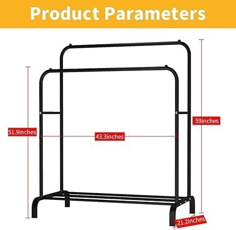 - 【عملي ومتين】رف الملابس شديد التحمل هذا مصنوع من هيكل معدني شديد التحمل وأنبوب سميك، مع قدرة دعم قوية ومتانة طويلة الأمد. طلاء أسود مع مقاومة كبيرة للتآكل والتآكل. يمكنك نقله من غرفة إلى أخرى بسهولة على السجاد أو الأسطح الصلبة حتى العتبات ولا يتأرجح على الإطلاق.