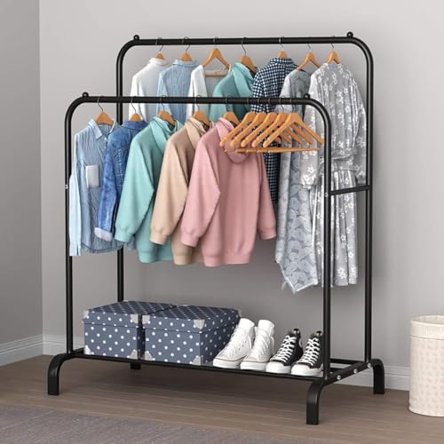 Generic - ستاند ومنظم ملابس متحرك قائم بذاته، حامل شماعات مزدوج متعددة الوظائف مع رف للأحذية، مواد مختلطة، متعدد الألوان