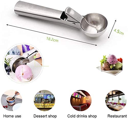 - ✔ مصممة لتدوم طويلًا - دائمًا يكون المنتج جديد. تختلف عن غيرها من الفولاذ المقاوم للصدأ الردئ، لن تتقشر مغارف الأيس كريم المصنوعة من الفولاذ المقاوم للصدأ 18/8 304 أو يتغير لونها، ويمكنك أن تكون واثق في سلامة ومتانة أداة المطبخ هذه. سهلة التنظيف: آمنة للغسل في غسالة الأطباق، لذا فإن تنظيفها لا يسبب أي متاعب؛ يوصى بغسل اليدين للاحتفاظ باللمعان.