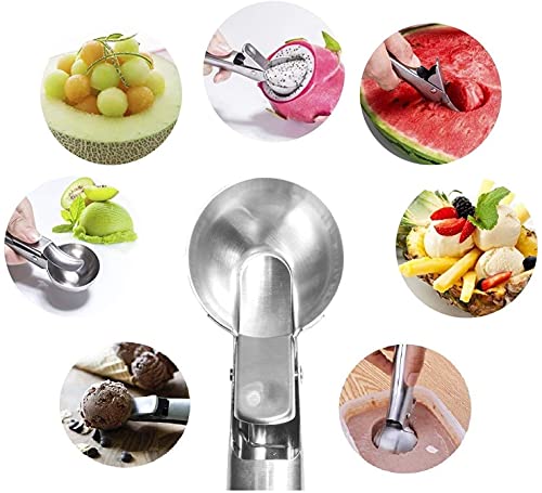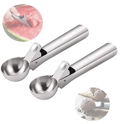 Freewalk - مغرفة ايس كريم وبطيخ وبسكويت من فريووك - مجموعة مكونة من قطعتين مقاس 5.08 سم من الفولاذ المقاوم للصدأ 304 مزودة بزناد لسهولة الاستخدام