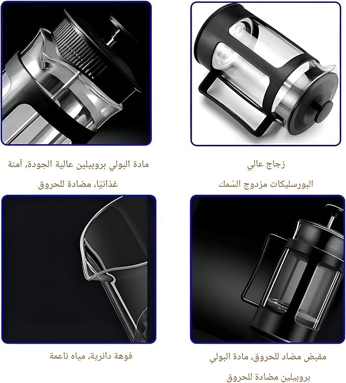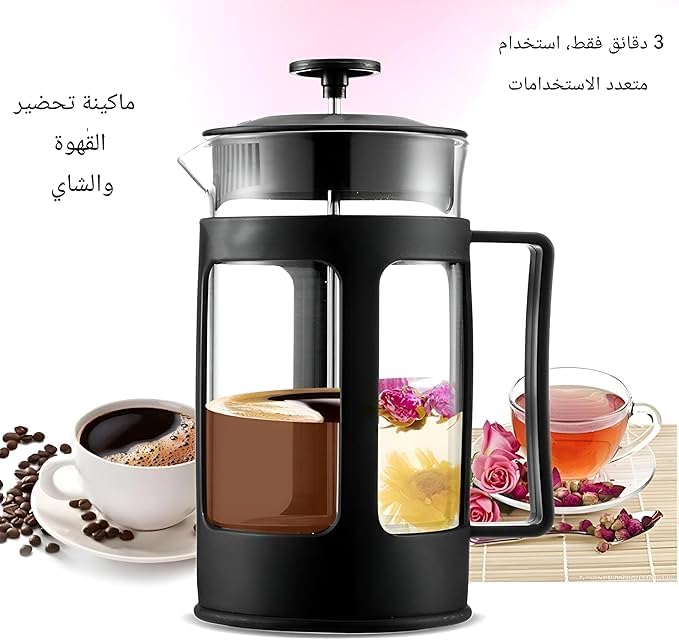 - نظام الكبس اليدوي: آلية ضغط سهلة الاستخدام تفصل القهوة المطحونة عن المشروب للحصول على قهوة نقية وغنية بالنكهة