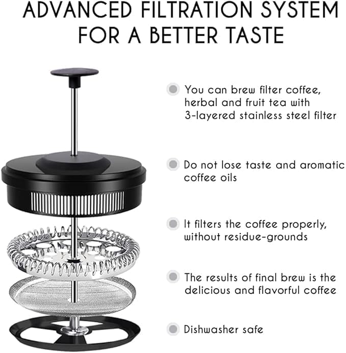 - 【تصميم مبتكر】يتميز مكبس القهوة الفرنسية بتصميم أنيق وعصري وجميل يراعي احتياجات ورغبات المستخدم.