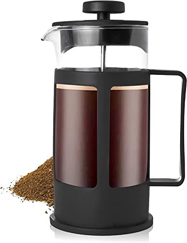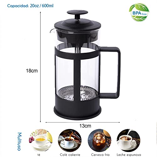Spaceshoop - ماكينة تحضير القهوة والشاي الفرنسية لتحضير القهوة بزجاج بوروسيليكات وفلتر من الفولاذ المقاوم للصدأ متينة ومقاومة للحرارة من هوماركت (600 مل)