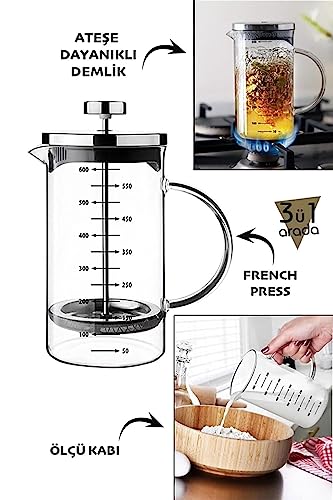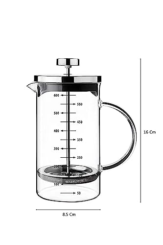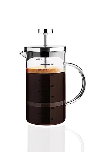 - ماكينة تحضير القهوة والشاي من فرينش بريس، فلتر للقهوة والشاي العشبي، زجاج البوروسيليكات 600 مل