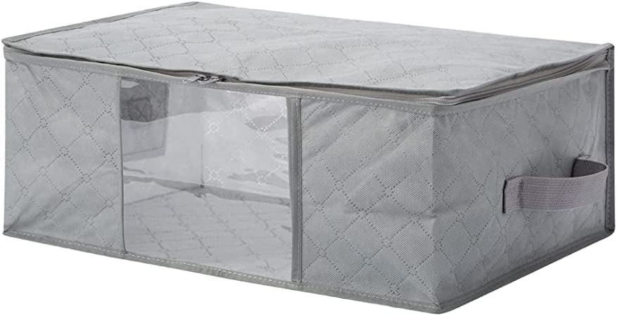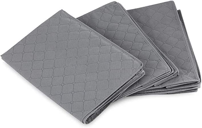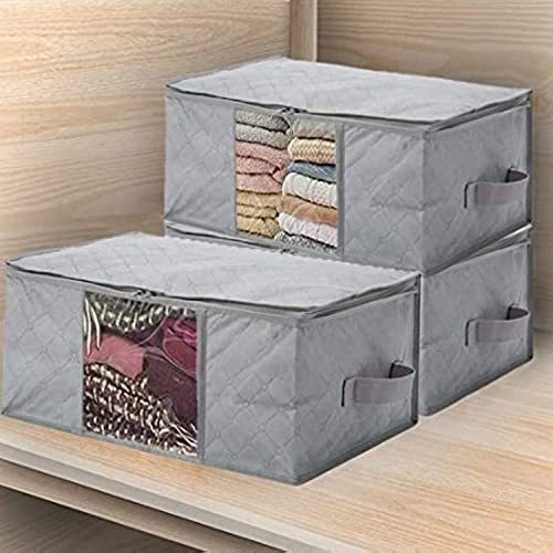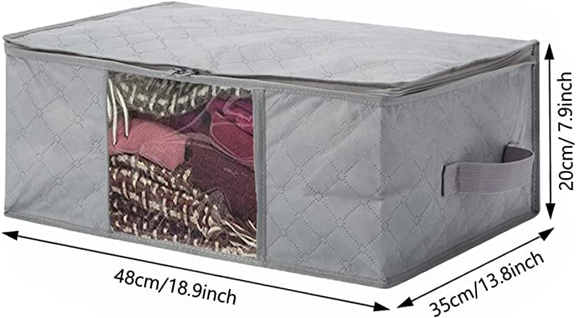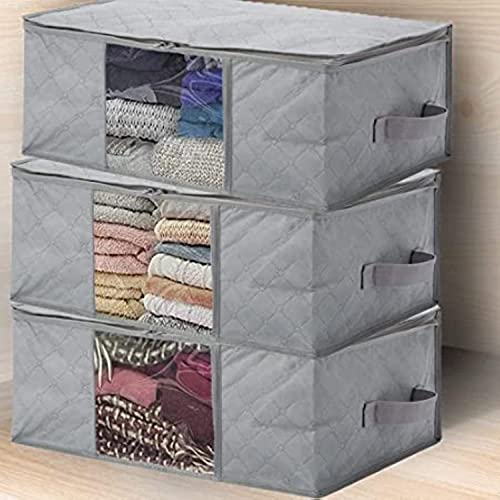 Fresh - شنط تخزين ملابس قابلة للطي من قماش غير منسوج سميك ومقاوم للماء، بجيوب وسوستة لتخزين البطانيات والملابس والوسائد والألعاب واللحف تحت السرير من فريش، 3 قطع، 48×35×20 سم (لون رمادي)
