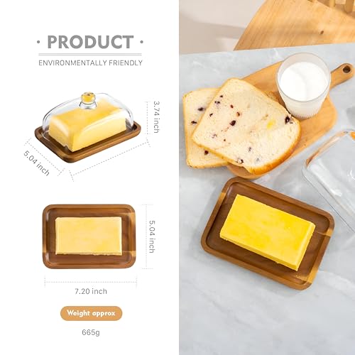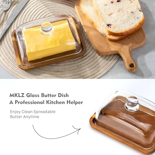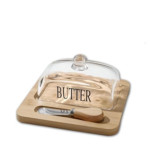 - يتميز طبق الزبدة الزجاجي الأنيق هذا بقاعدة خشبية مصنوعة بشكل جميل وغطاء زجاجي شفاف، مما يسمح لك برؤية الزبدة مع الحفاظ عليها طازجة. يمكن استخدامه أيضًا كلوح تقطيع للزبدة، مما يضيف عملية إلى تصميمه الساحر، مما يجعله إضافة ذكية لأي إعداد مطبخ.