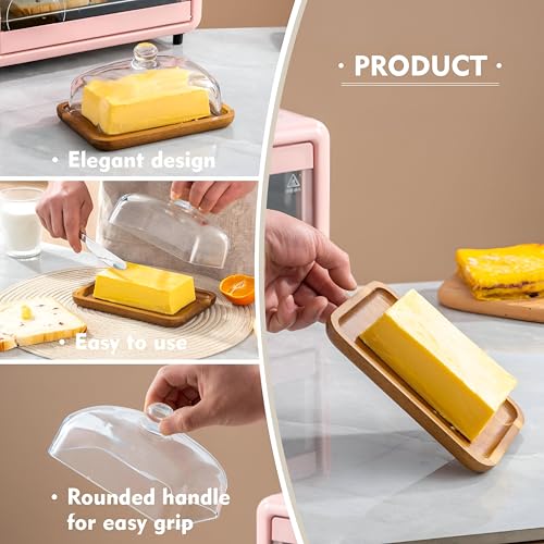 - يُعد طبق الزبدة الزجاجي المتطور هذا ذو الغطاء الخشبي هدية رائعة لمحبي الزبدة أو أي شخص يقدر أدوات المطبخ الأنيقة. مثالي للمناسبات الخاصة مثل حفلات الزفاف وأعياد الميلاد وحفلات الانتقال إلى منزل جديد أو عيد الميلاد، فهو يضيف الجمال إلى أي طاولة طعام ويمنح لمسة من الأناقة لتجارب تناول الطعام اليومية.