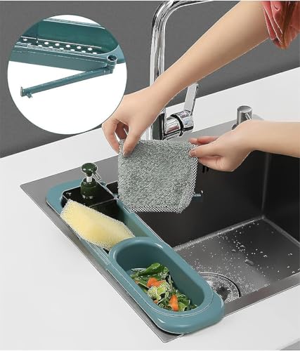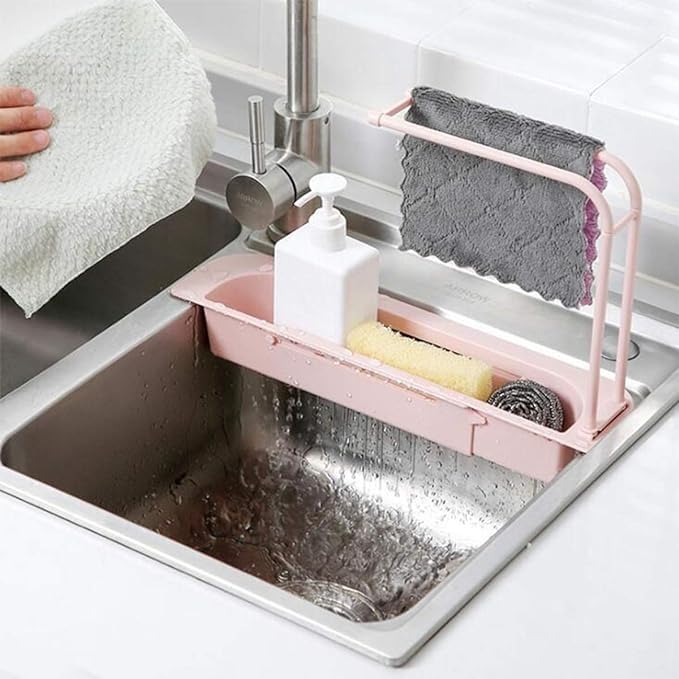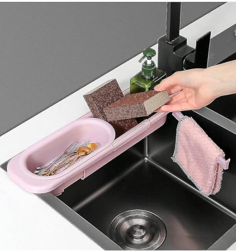 Generic - حامل ورف للإسفنجة والصابون قابل للتوسيع لحوض المطبخ، صبانة بتصميم سلة لحفظ الصابون وإسفنجة التنظيف من فوكوا (بينك)، قماش، زهري