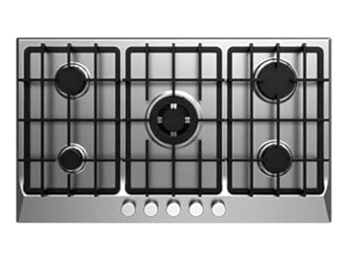 Fresh - بوتاجاز غاز مدمج مصنوع من فولاذ مقاوم للصدأ من فريش، بـ 5 شعلات مقاس 60 × 90 سم موديل HAFR90CMS - أسود وفضي