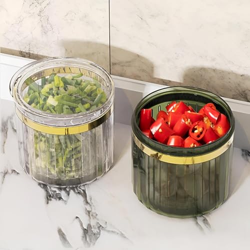- مصنوع من مواد عالية الجودة آمنة غذائيًا تقاوم البقع والروائح، غطاء محكم الغلق مانع للتسرب يغلق بإحكام للحفاظ على النضارة ومنع التلوث المتبادل؛ الجزء الداخلي لا يمتص الروائح القوية، مما يجعله مثاليًا لتخزين البصل والثوم والزنجبيل والصلصات والتوابل.