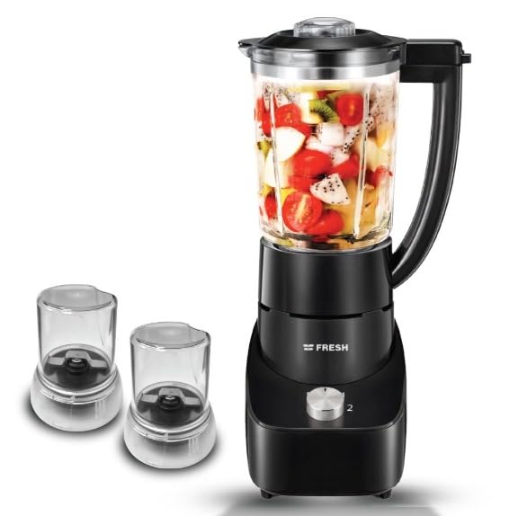 Fresh - فريش خلاط تربو ميكس دورق كبير ضد الكسر 1.5 لتر مع 2 مطحنة ضد الكسر، أسود