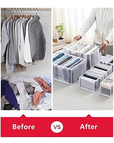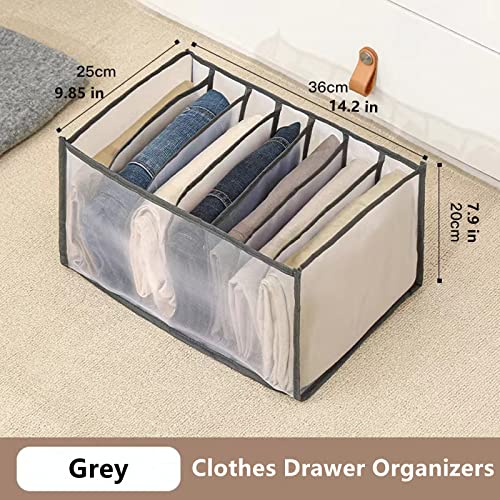 FreSheep - منظم ملابس لدولاب الملابس، منظم أدراج مزود بـ 7 شبكات للملابس الجينز والتيشرتات، منظم تخزين ملابس قابل للغسل للملابس المطوية من فريشيب، رمادي