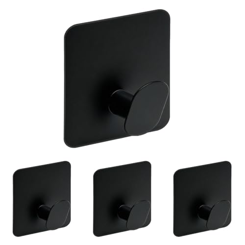 Freshfresh - شماعات مناشف ذاتية اللصق من الفولاذ المقاوم للصدأ تثبت على الحائط للمعاطف والروب والملابس والحمام والدش ومستلزمات النظافة والتخزين في المطبخ، مقاومة للماء وشديدة التحمل، 4 قطع من فريش فريش، أسود