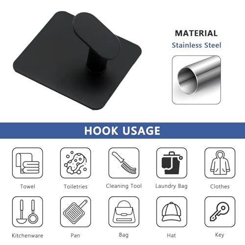 - 【الخامة】مصنوعة من الفولاذ المقاوم للصدأ، الخطافات ذاتية اللصق مصممة لتدوم طويلًا. مقاومة للصدأ والتآكل، مما يجعلها مثالية للاستخدام في المناطق الرطبة، مثل الحمام والدش. كما أنها مقاومة للزيت، مما يجعلها مناسبة للمطبخ.