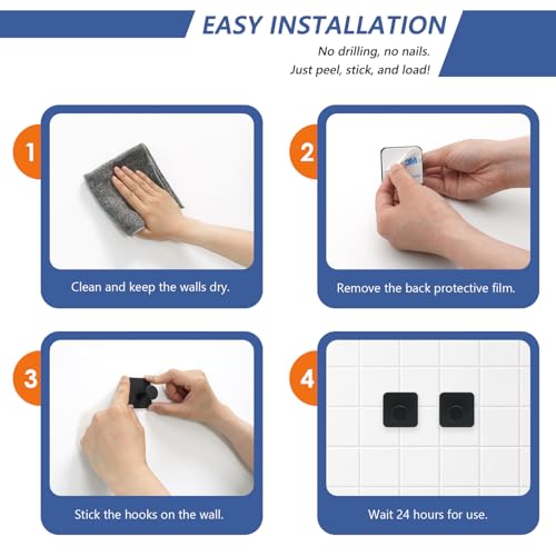 - 【سهلة الصيانة】ببساطة امسحها بقطعة قماش مبللة للحفاظ على خطافات الحائط اللاصقة تبدو جديدة تمامًا. بالإضافة إلى ذلك، لن يتأثر الجزء الخلفي اللاصق بالتنظيف، مما يضمن بقاء الخطافات ثابتة في مكانها.