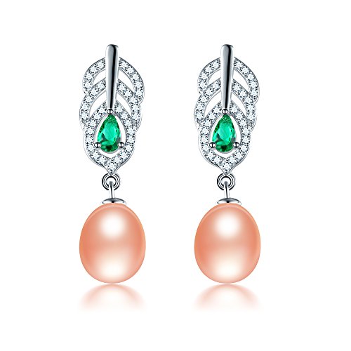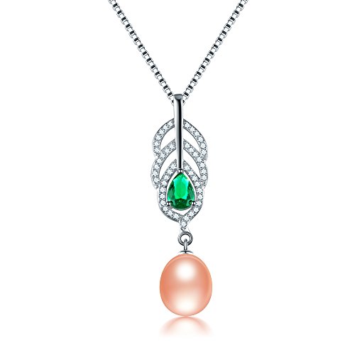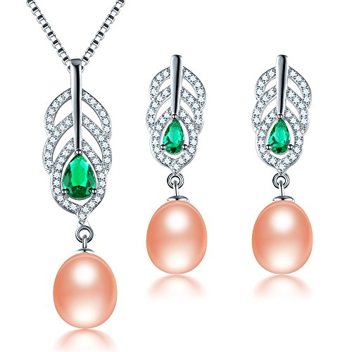 DIAMOVI - طقم حلي يتضمن سلسلة وحلق بتصميم قطرة ماء من الفضة الاسترليني عيار 925 مرصع بحبات لؤلؤ المياه العذبة بجودة ايه ايه ايه، يمكن تقديمهم كهدية في حفل الزفاف من دياموفي (ياتي بالوان ابيض وبينك وارجواني)