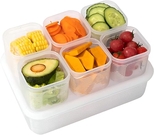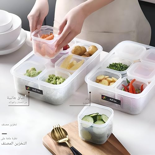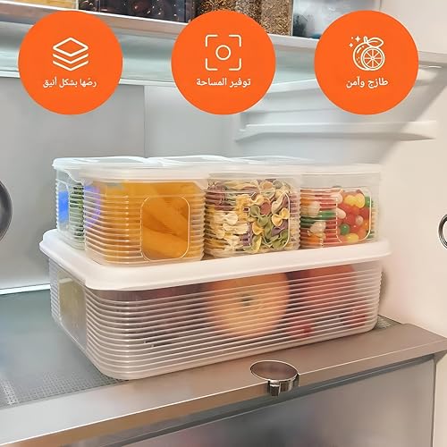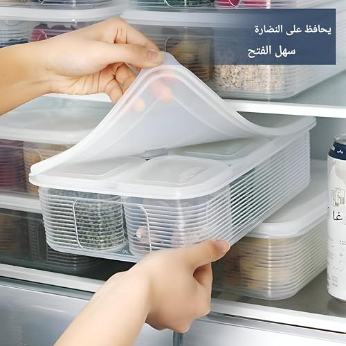 Generic - صناديق تخزين بلاستيكية بيضاء صديقة للثلاجة - شفافة، مجموعة قابلة لاعادة الاستخدام مع 6 اقسام مقسمة لتنظيم الخضروات الطازجة والفواكه واللحوم والاسماك