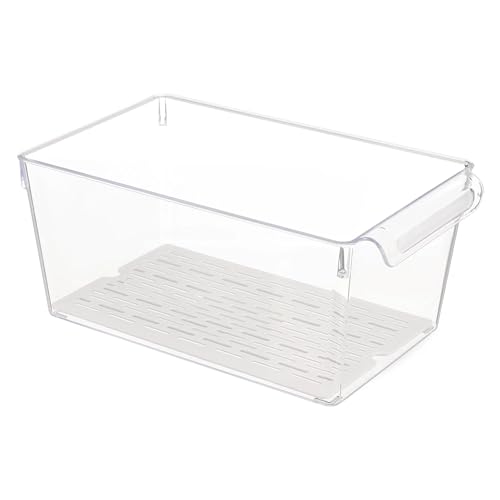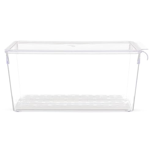 • سعة تخزينية متعددة الاستخدامات: سلة أكريليك مستطيلة كبيرة مع سلة وغطاء مدمجين، مثالية لتنظيم الثلاجة وتخزين المؤن